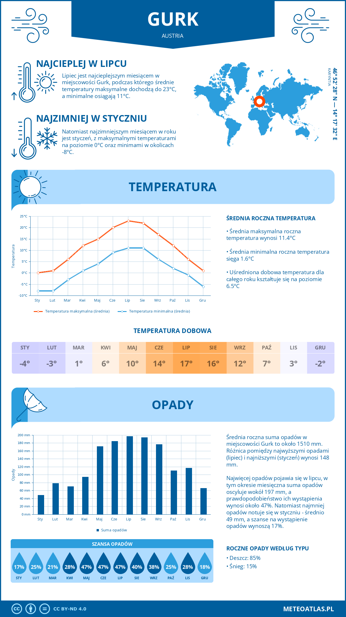 Gurk (Austria) - pogoda i klimat: roczne średnie temperatury i opady