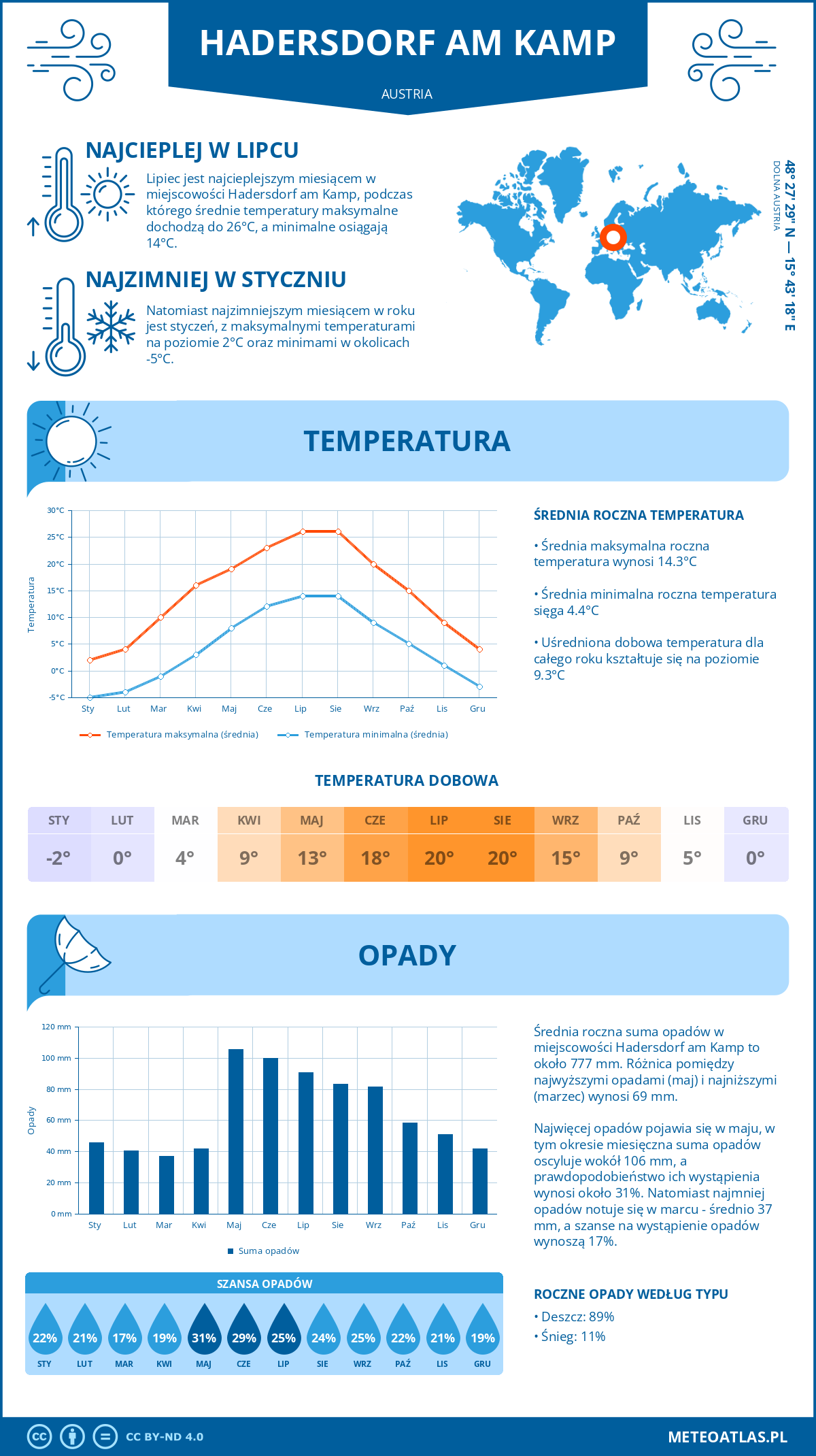 Hadersdorf am Kamp (Austria) - pogoda i klimat: roczne średnie temperatury i opady