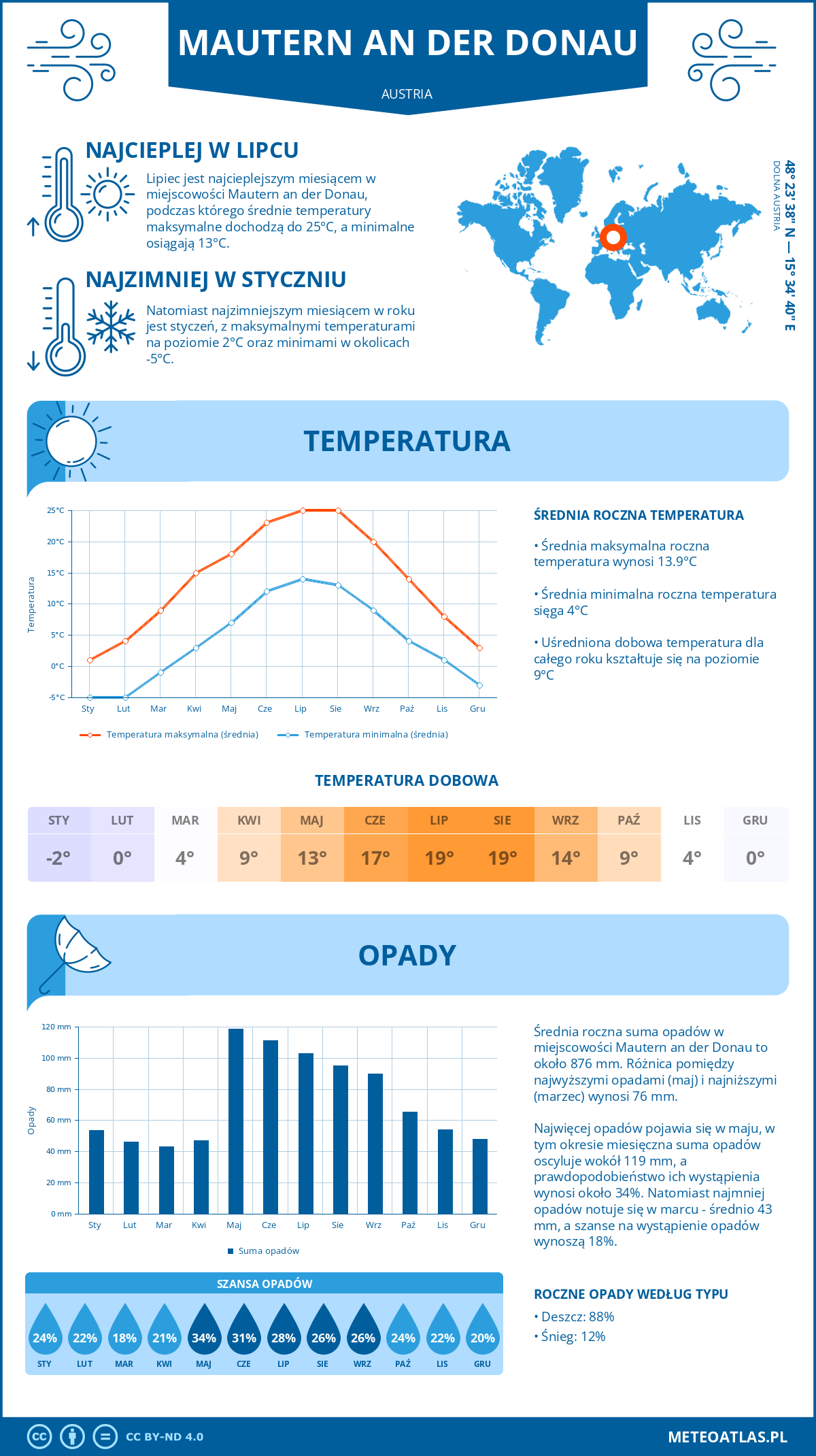 Infografika: klimat oraz miesięczne średnie temperatury i opady