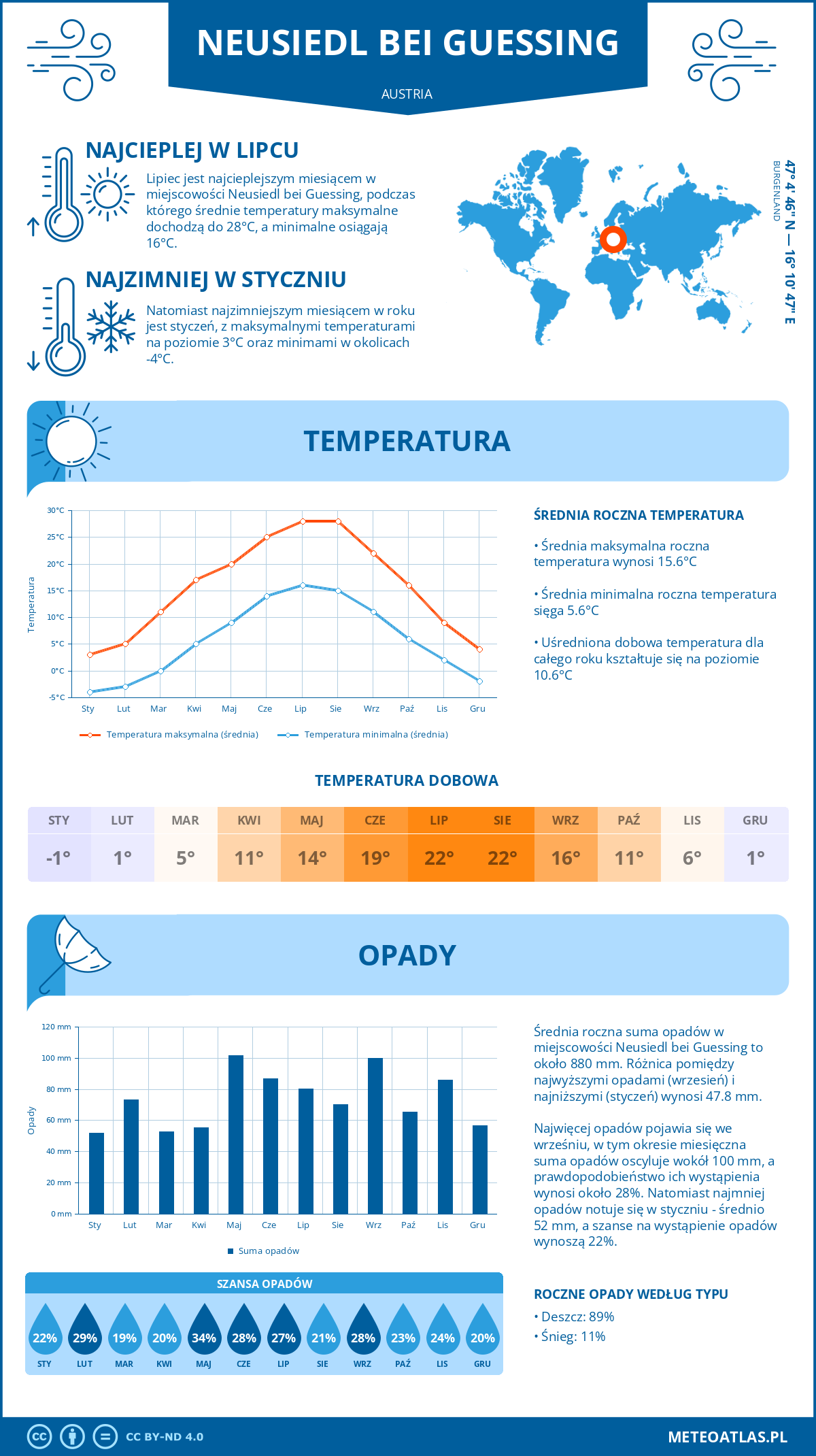 Neusiedl bei Guessing (Austria) - pogoda i klimat: roczne średnie temperatury i opady