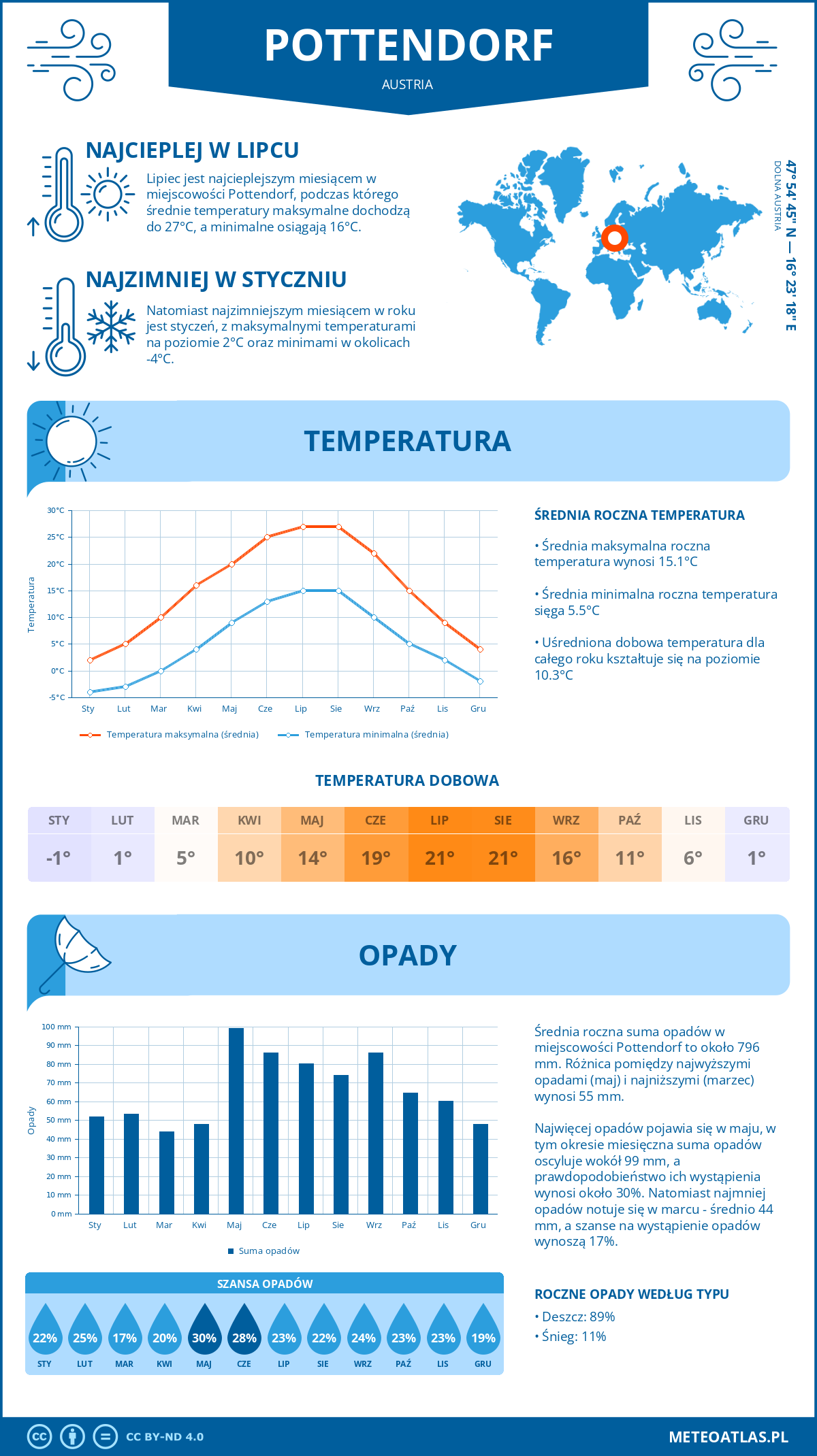 Pottendorf (Austria) - pogoda i klimat: roczne średnie temperatury i opady