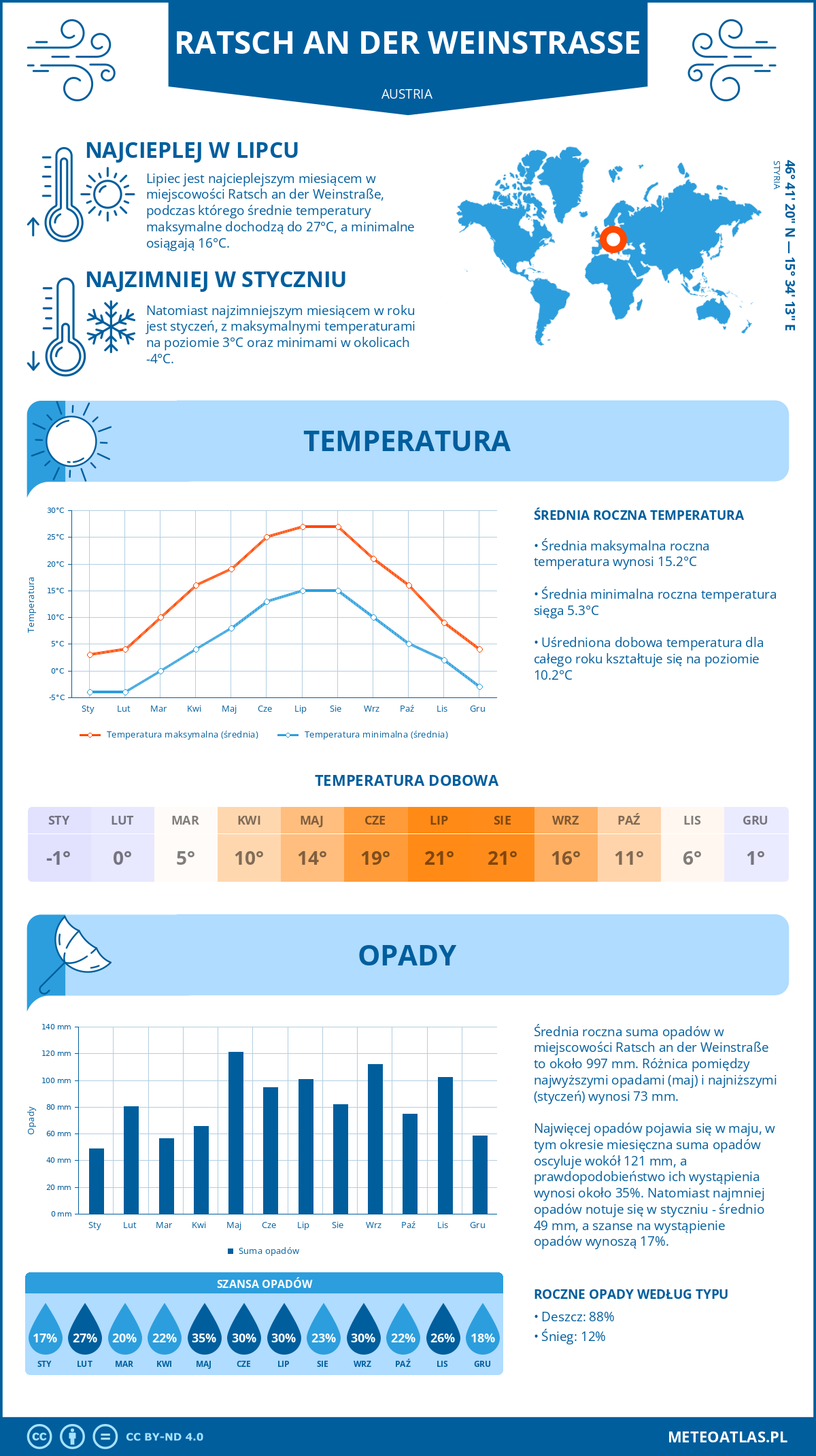 Ratsch an der Weinstraße (Austria) - pogoda i klimat: roczne średnie temperatury i opady