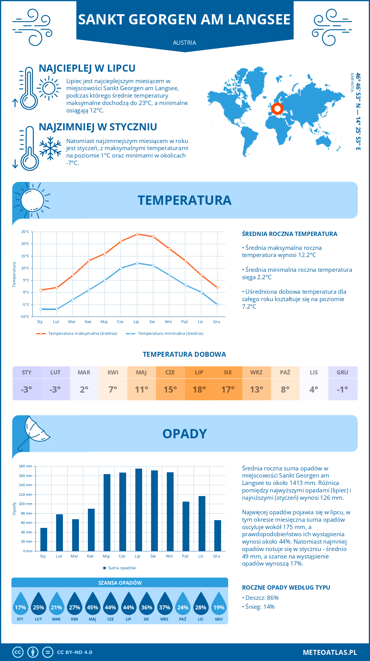 Sankt Georgen am Langsee (Austria) - pogoda i klimat: roczne średnie temperatury i opady