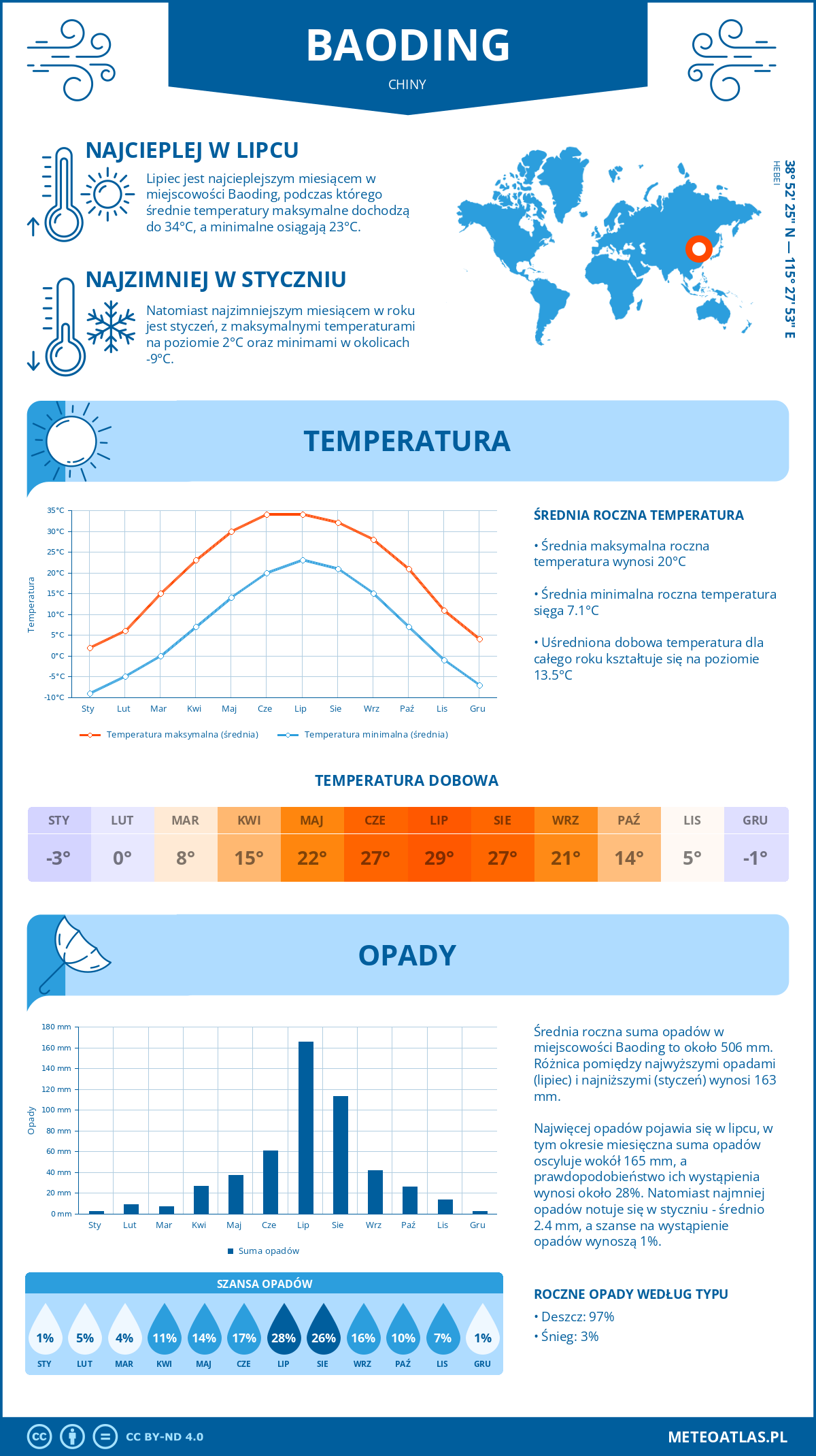 Baoding - pogoda i klimat: roczne średnie temperatury i opady