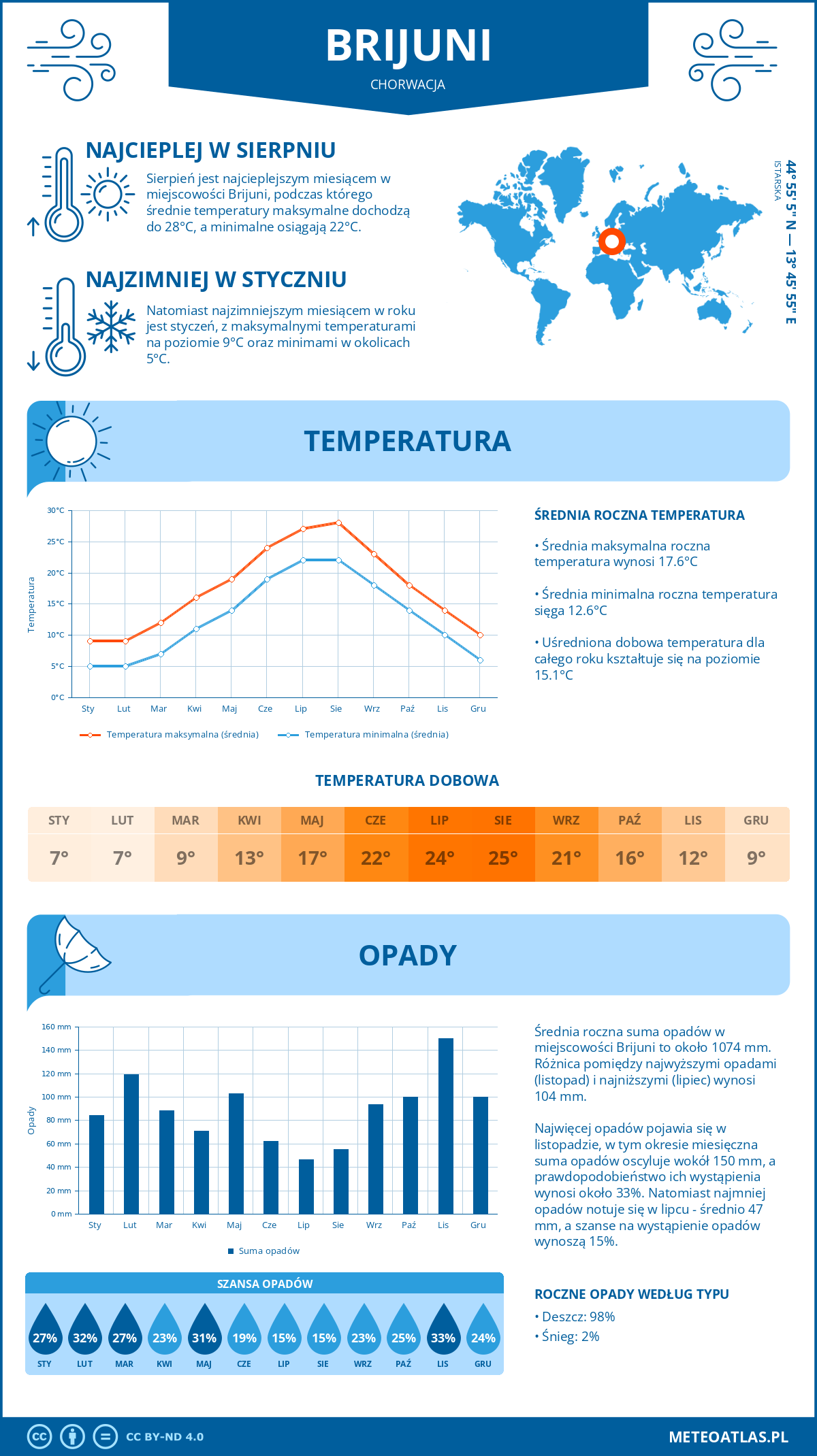 Brijuni (Chorwacja) - pogoda i klimat: roczne średnie temperatury i opady