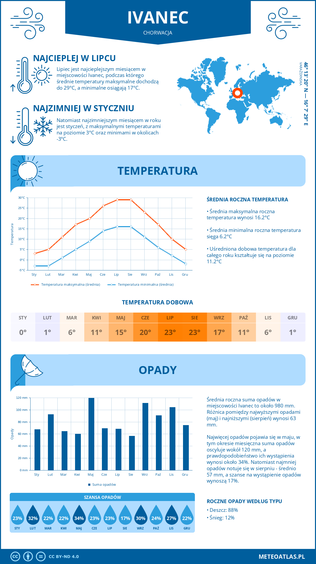 Ivanec (Chorwacja) - pogoda i klimat: roczne średnie temperatury i opady