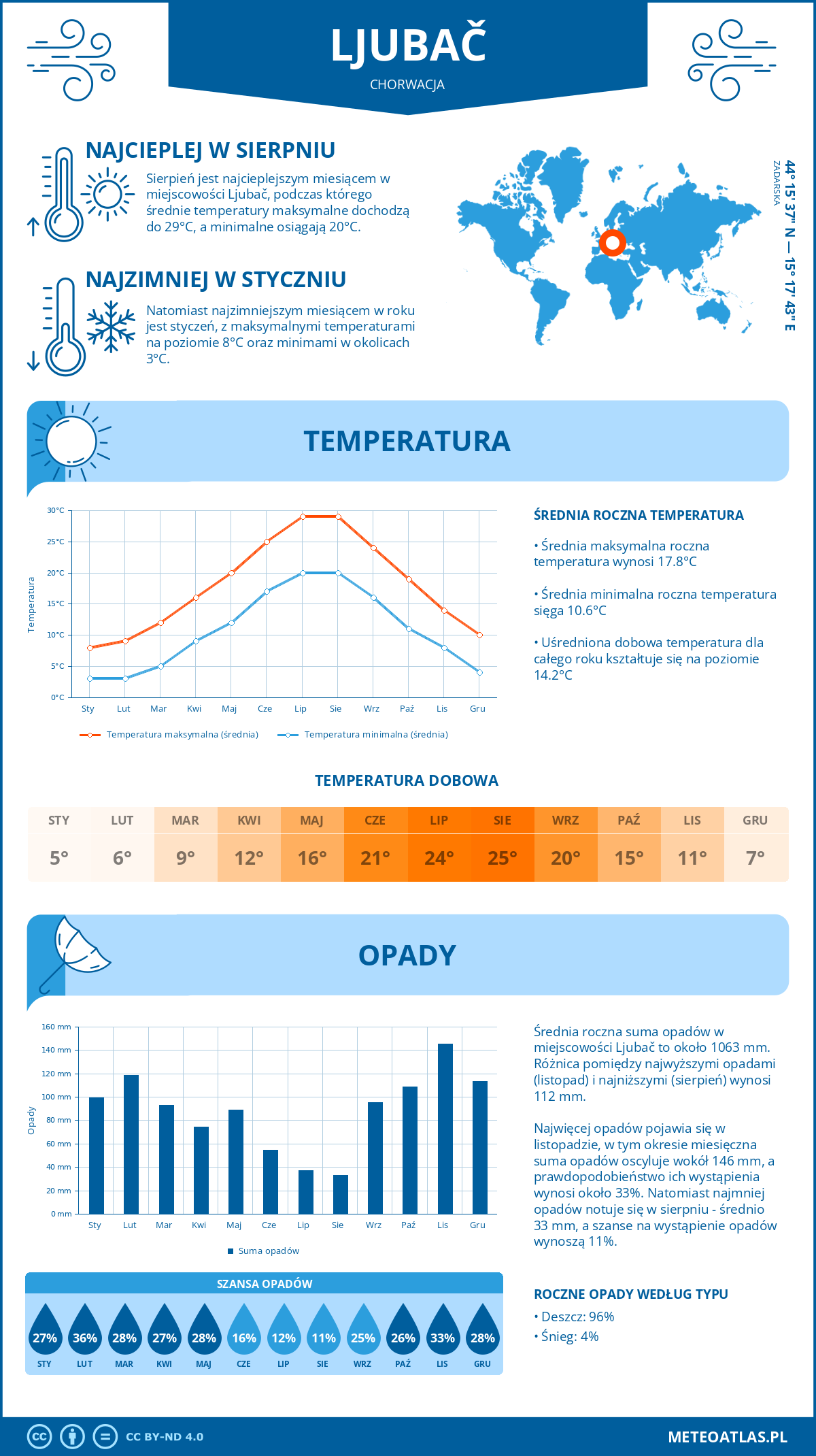 Infografika: klimat oraz miesięczne średnie temperatury i opady