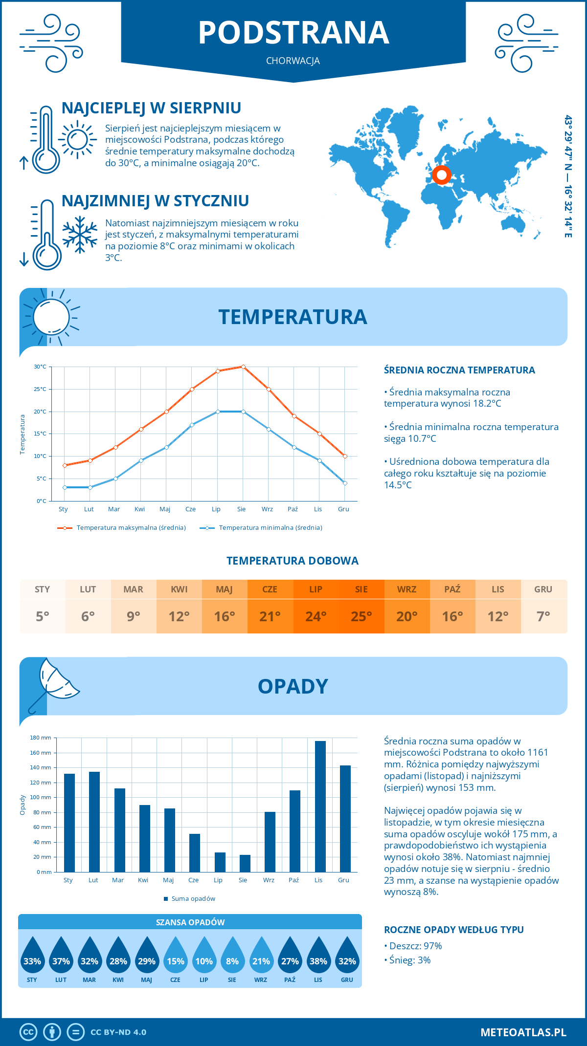 Infografika: klimat oraz miesięczne średnie temperatury i opady