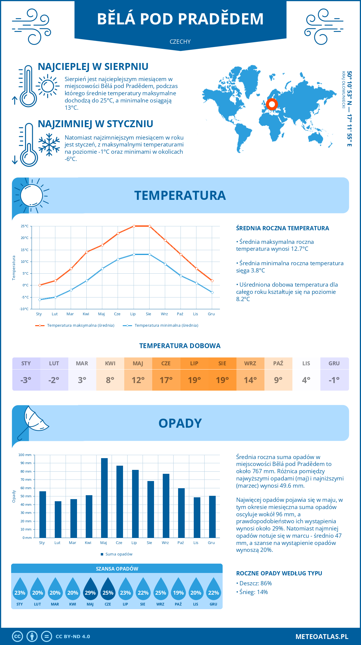 Infografika: klimat oraz miesięczne średnie temperatury i opady