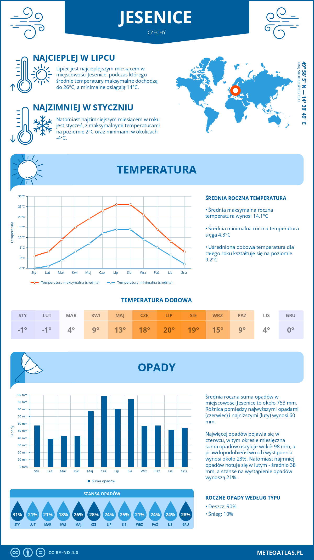 Jesenice (Czechy) - pogoda i klimat: roczne średnie temperatury i opady