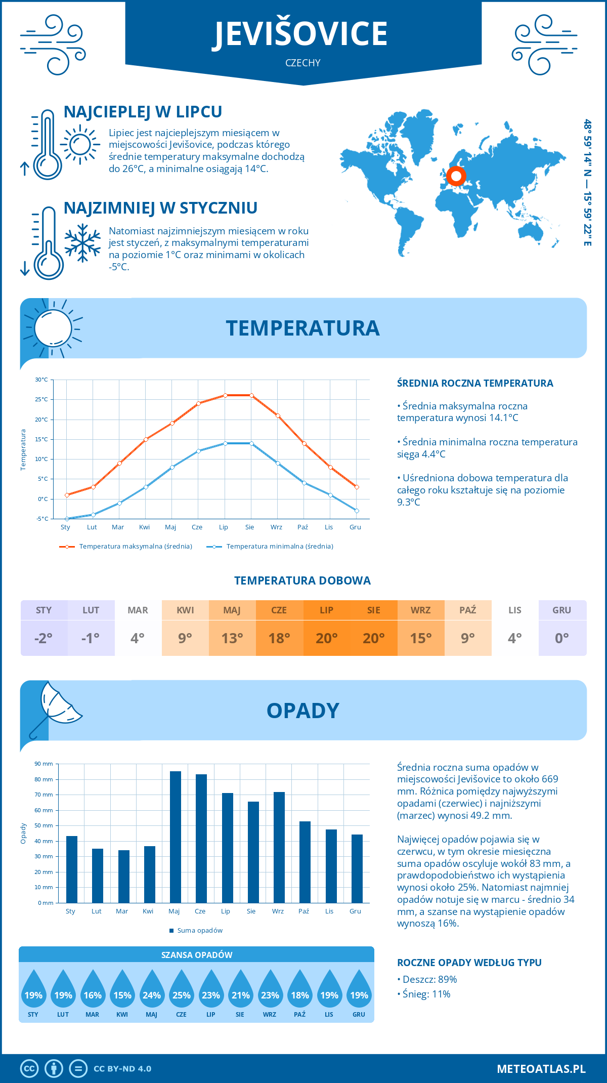 Infografika: klimat oraz miesięczne średnie temperatury i opady