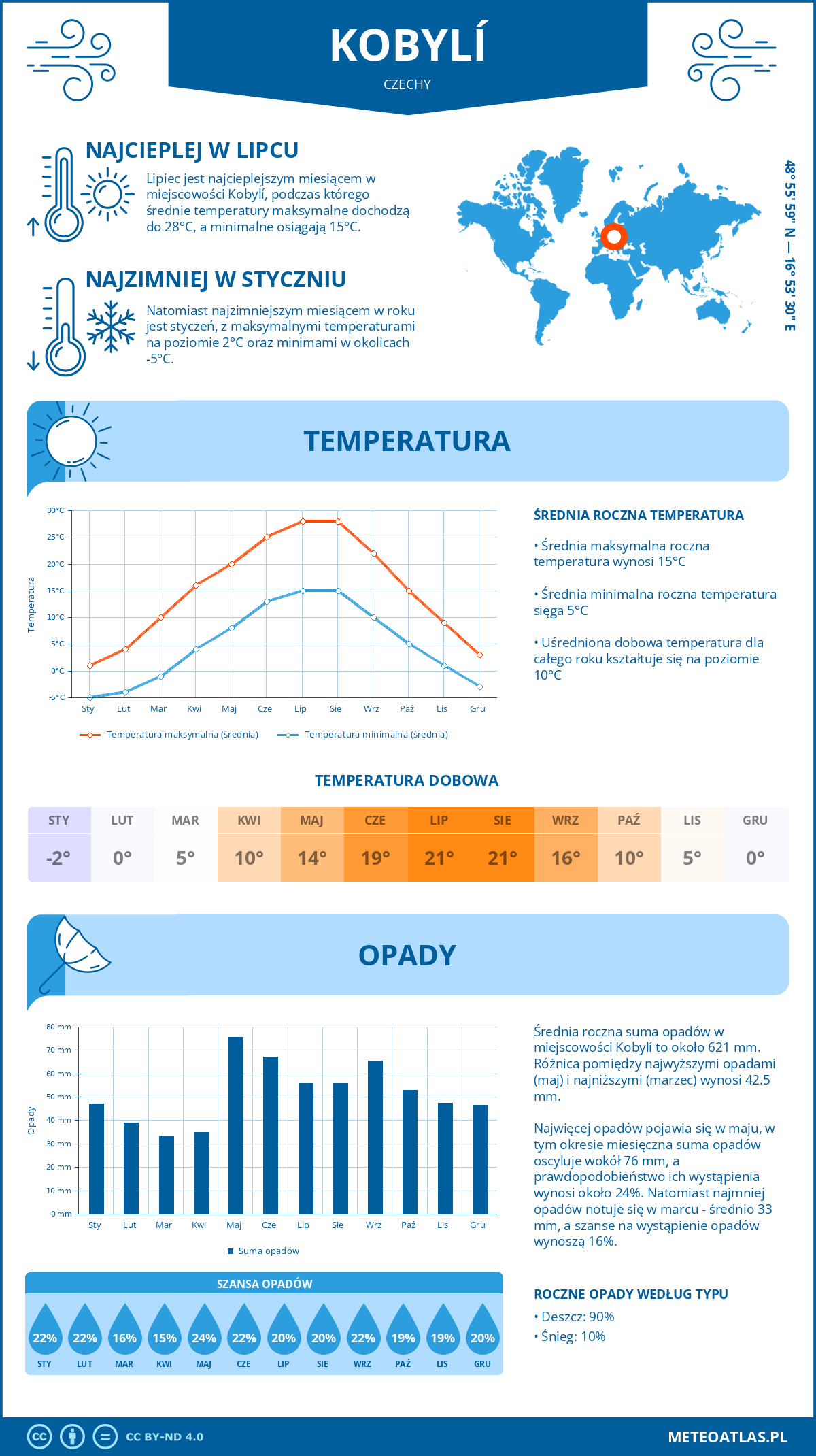 Kobylí (Czechy) - pogoda i klimat: roczne średnie temperatury i opady