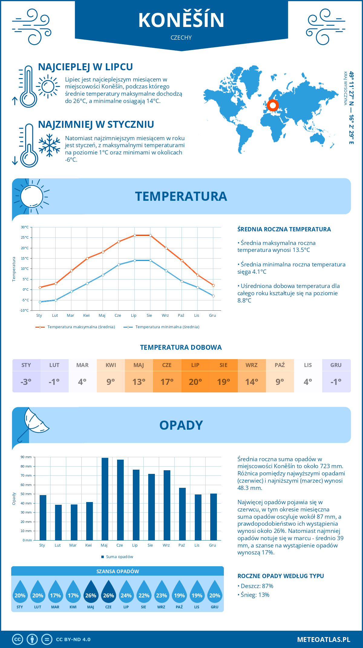 Infografika: klimat oraz miesięczne średnie temperatury i opady