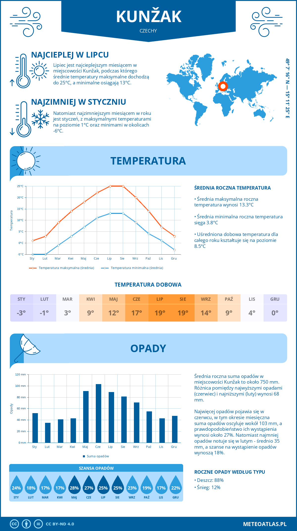 Infografika: klimat oraz miesięczne średnie temperatury i opady