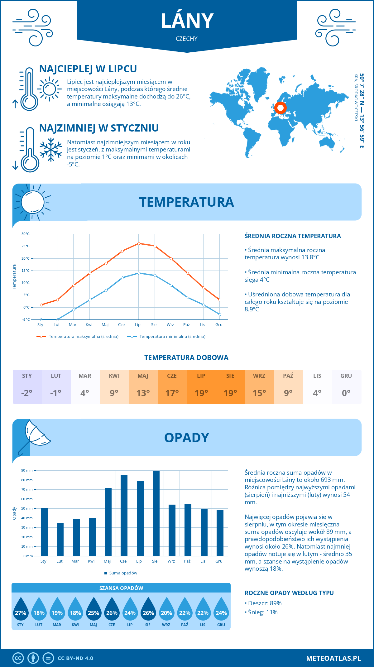 Infografika: klimat oraz miesięczne średnie temperatury i opady