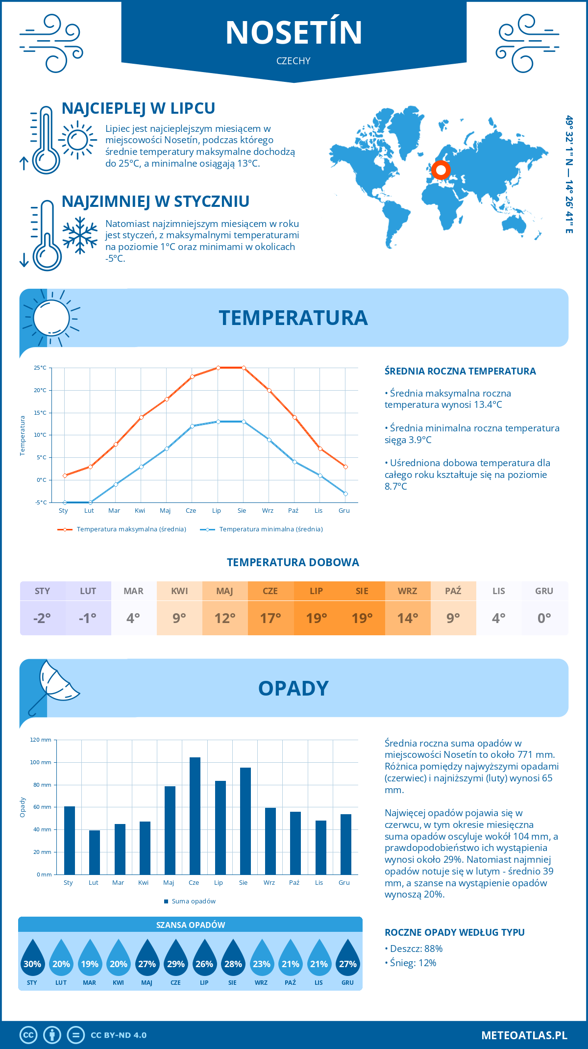 Nosetín (Czechy) - pogoda i klimat: roczne średnie temperatury i opady