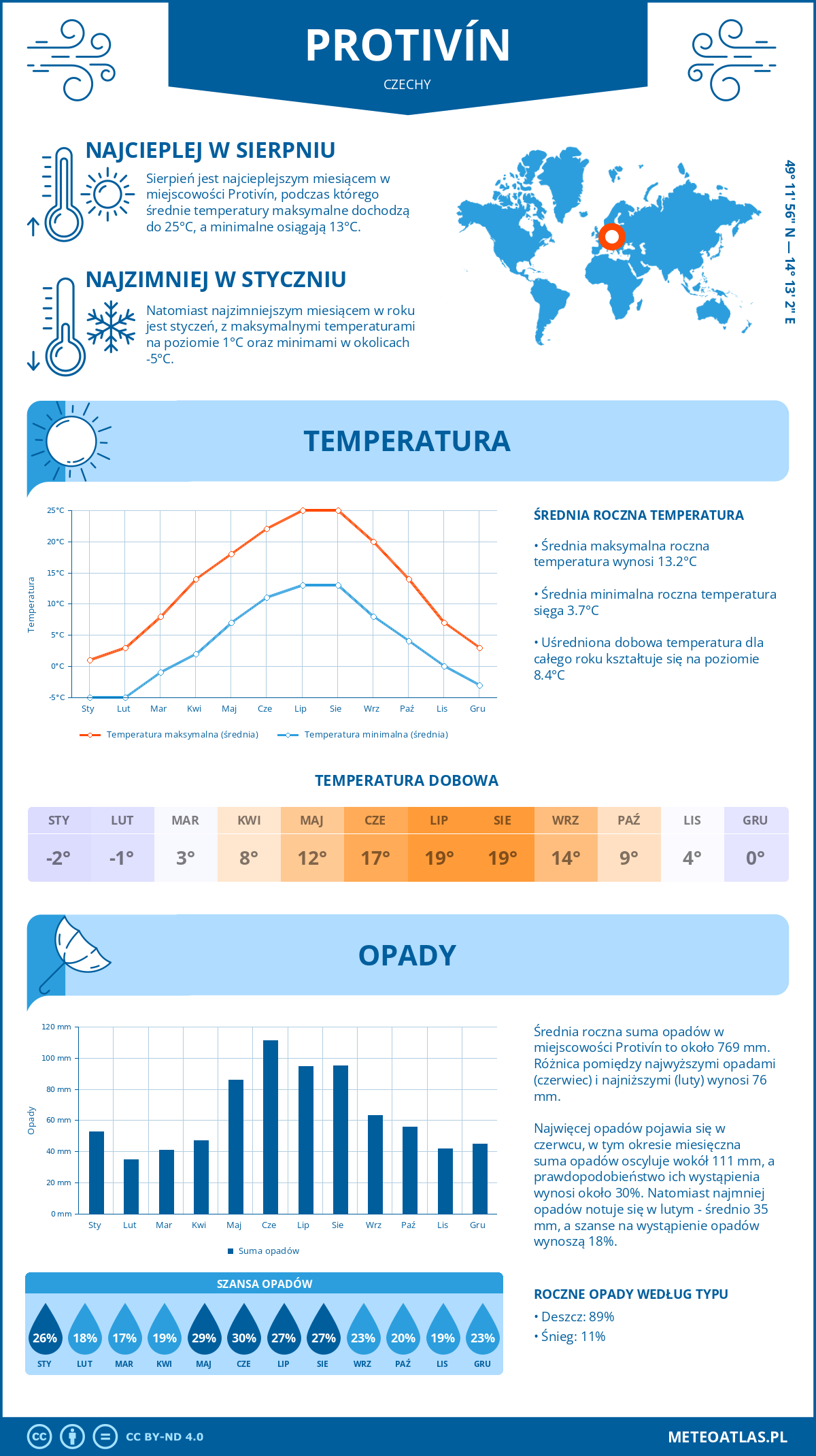 Protivín (Czechy) - pogoda i klimat: roczne średnie temperatury i opady