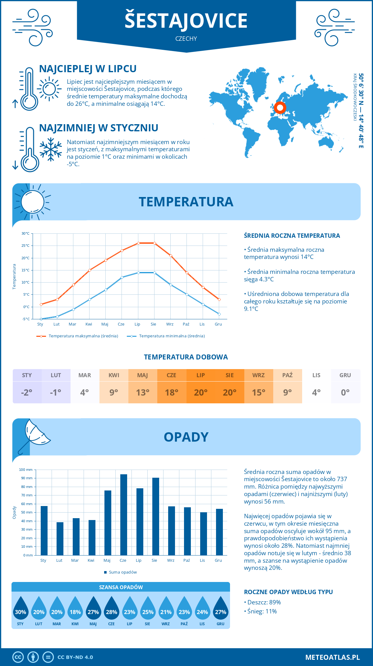 Šestajovice (Czechy) - pogoda i klimat: roczne średnie temperatury i opady