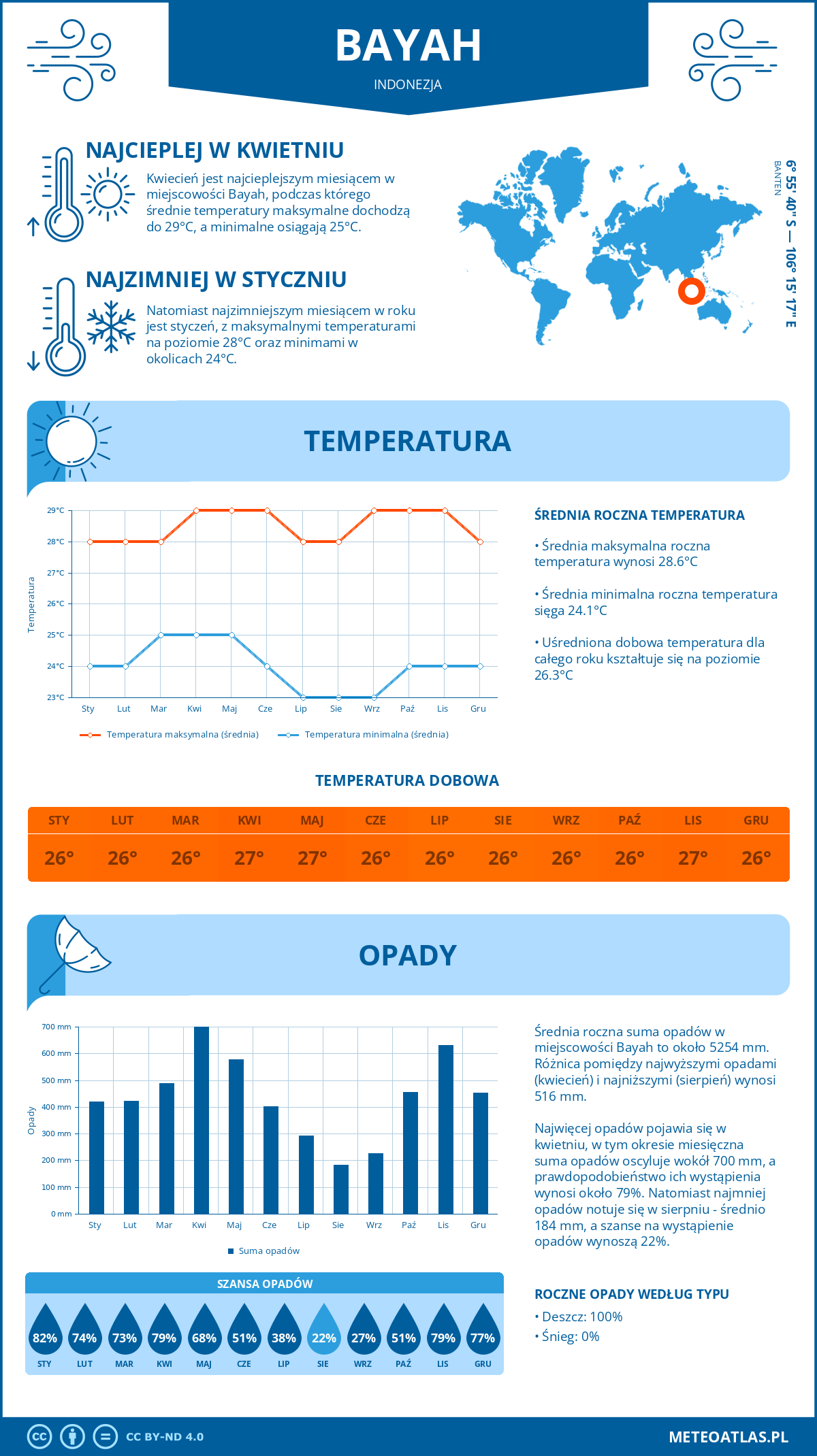 Bayah (Indonezja) - pogoda i klimat: roczne średnie temperatury i opady