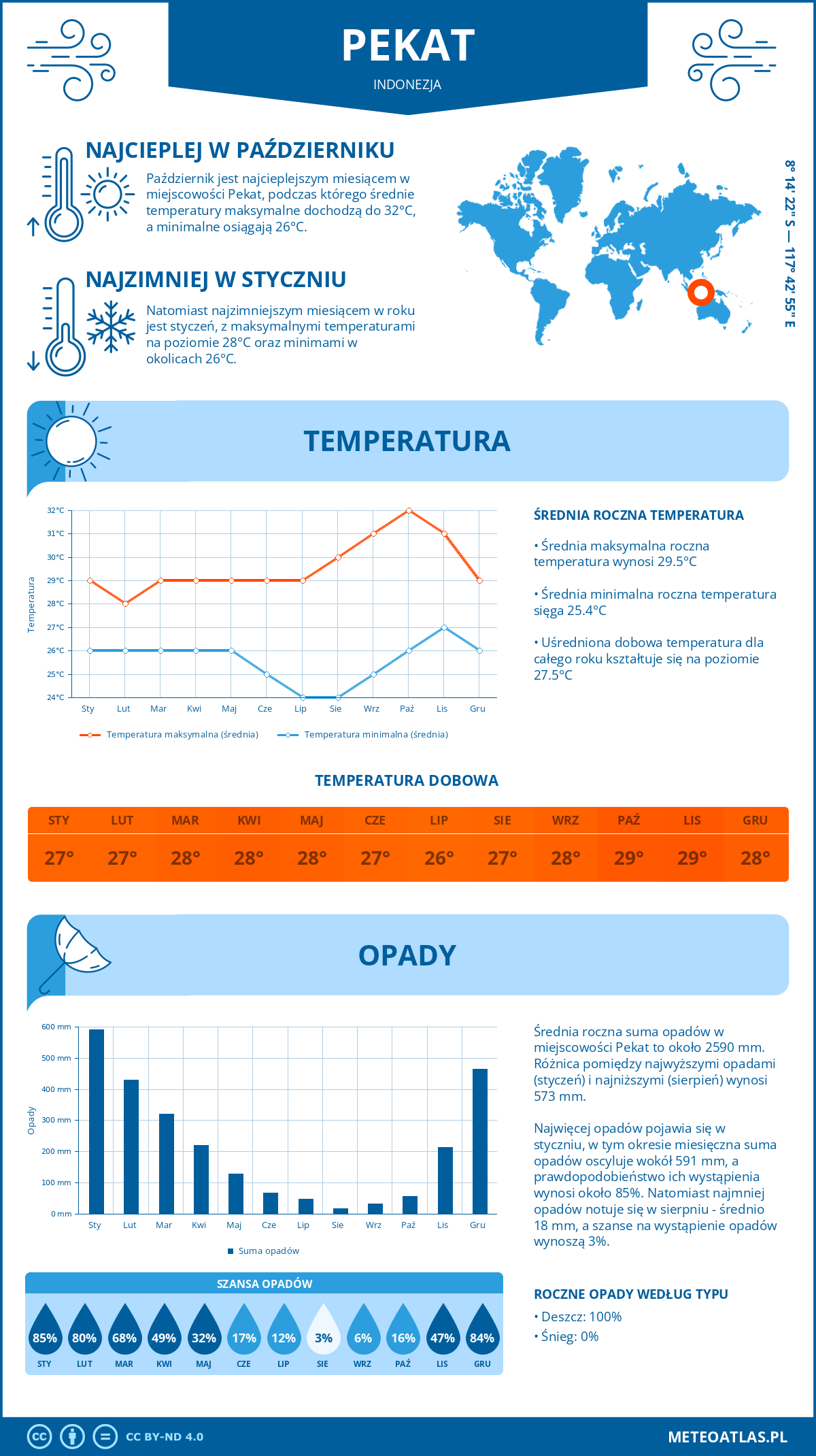 Pekat (Indonezja) - pogoda i klimat: roczne średnie temperatury i opady