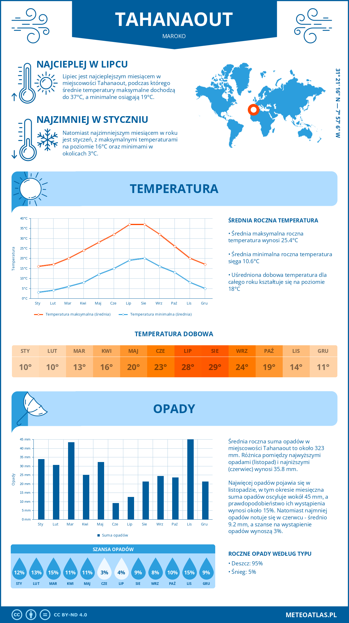 Infografika: klimat oraz miesięczne średnie temperatury i opady