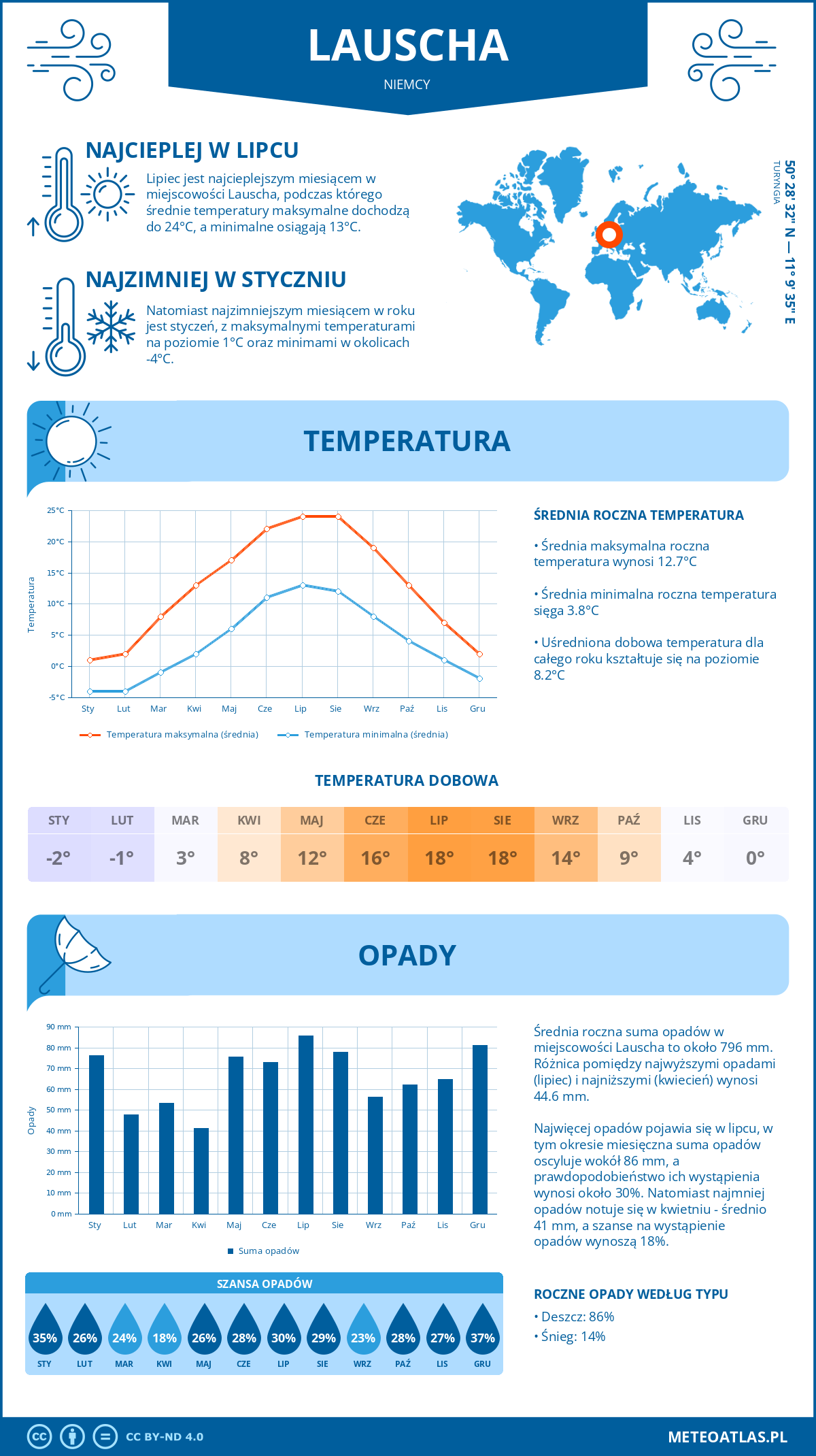 Infografika: klimat oraz miesięczne średnie temperatury i opady