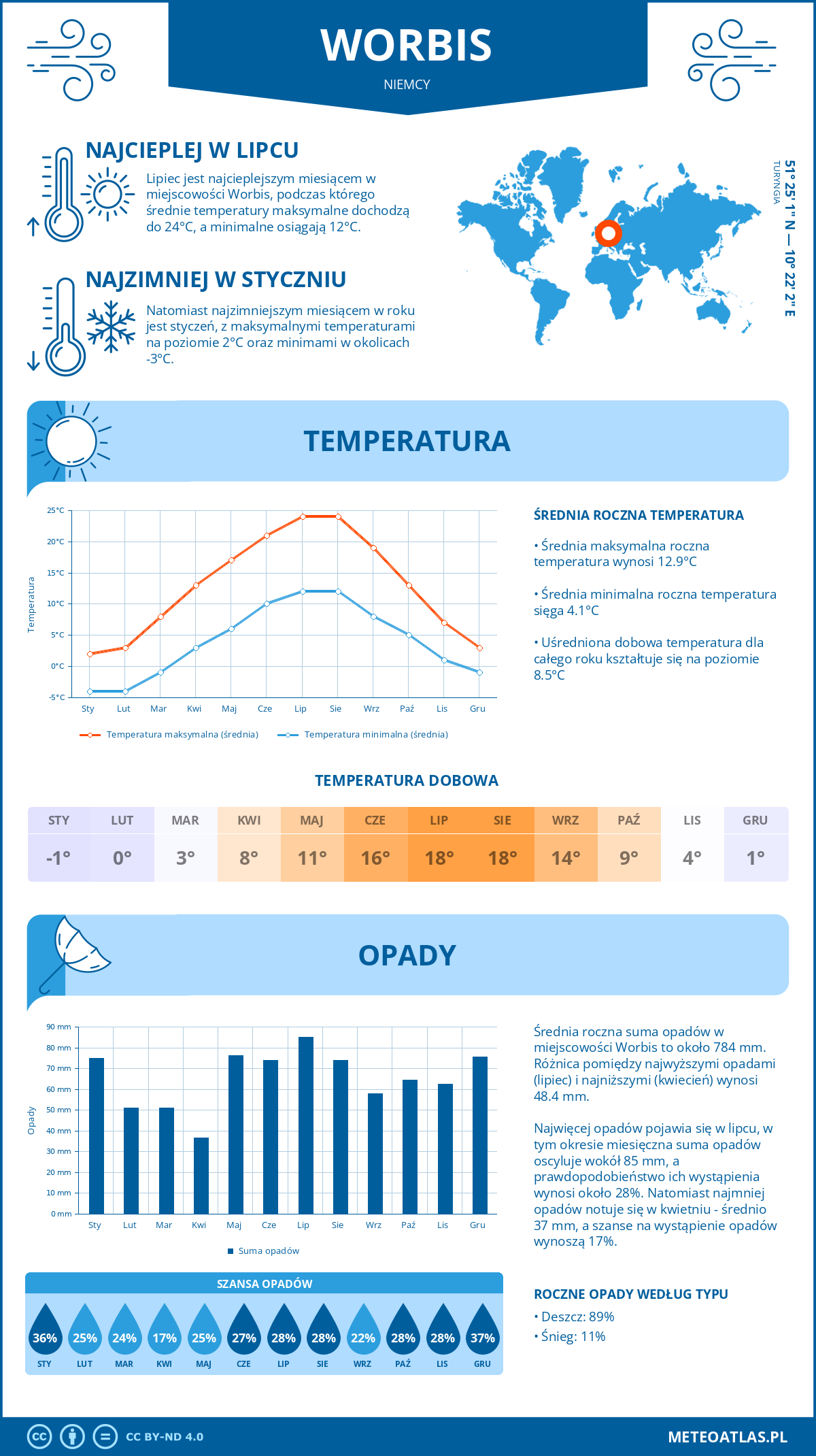 Infografika: klimat oraz miesięczne średnie temperatury i opady