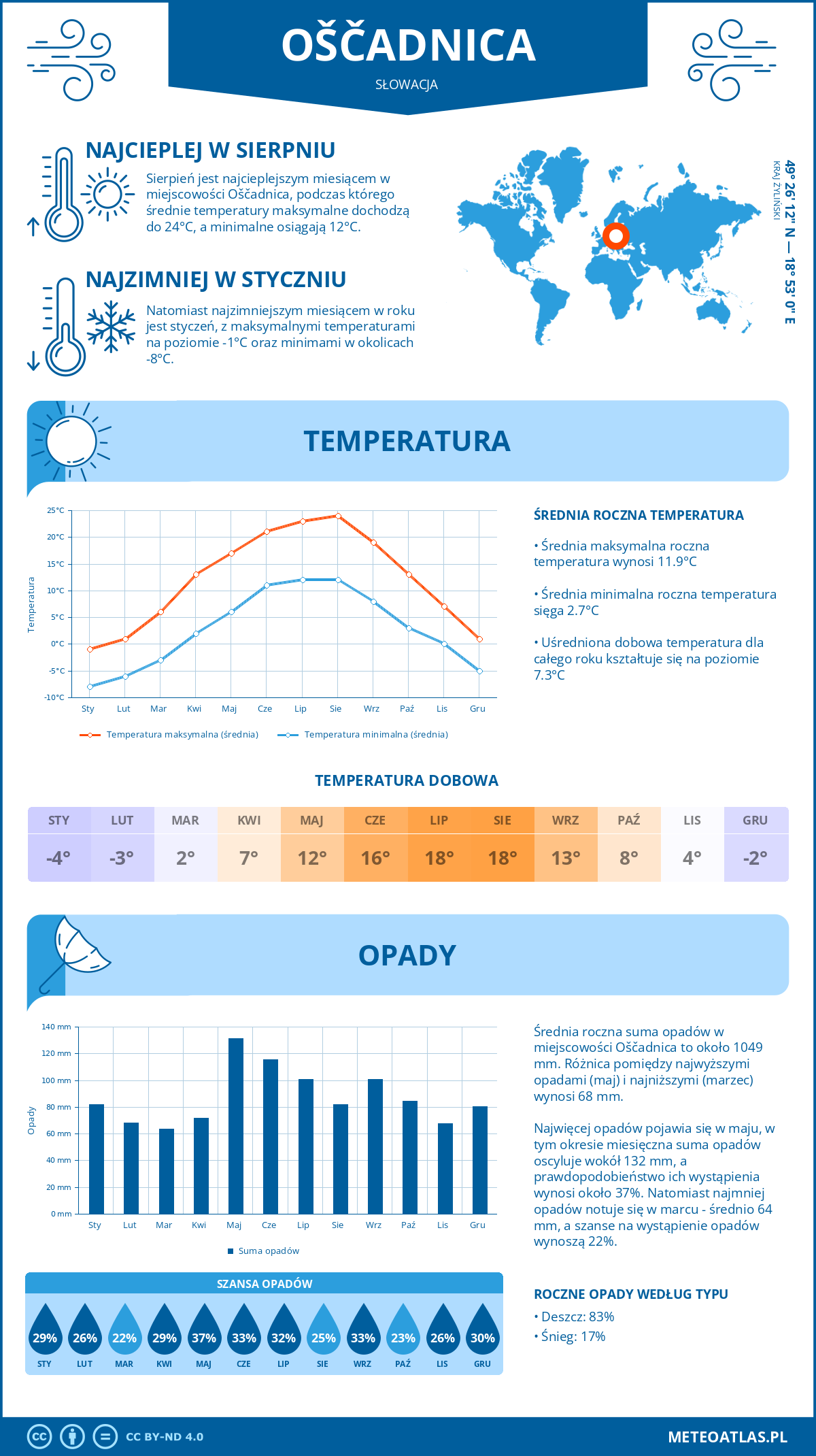 Oszczadnica (Słowacja) - pogoda i klimat: roczne średnie temperatury i opady