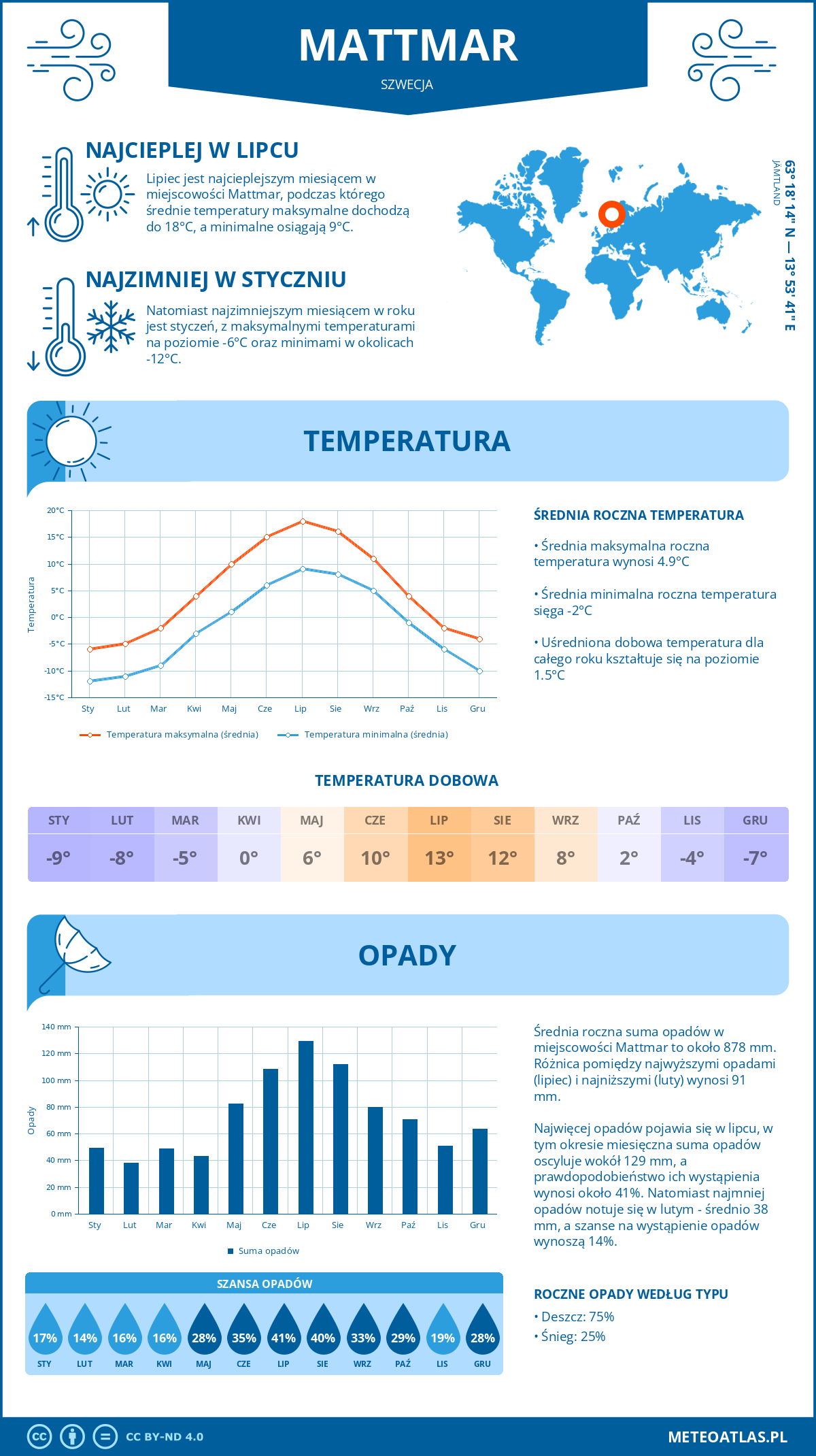 Mattmar (Szwecja) - pogoda i klimat: roczne średnie temperatury i opady