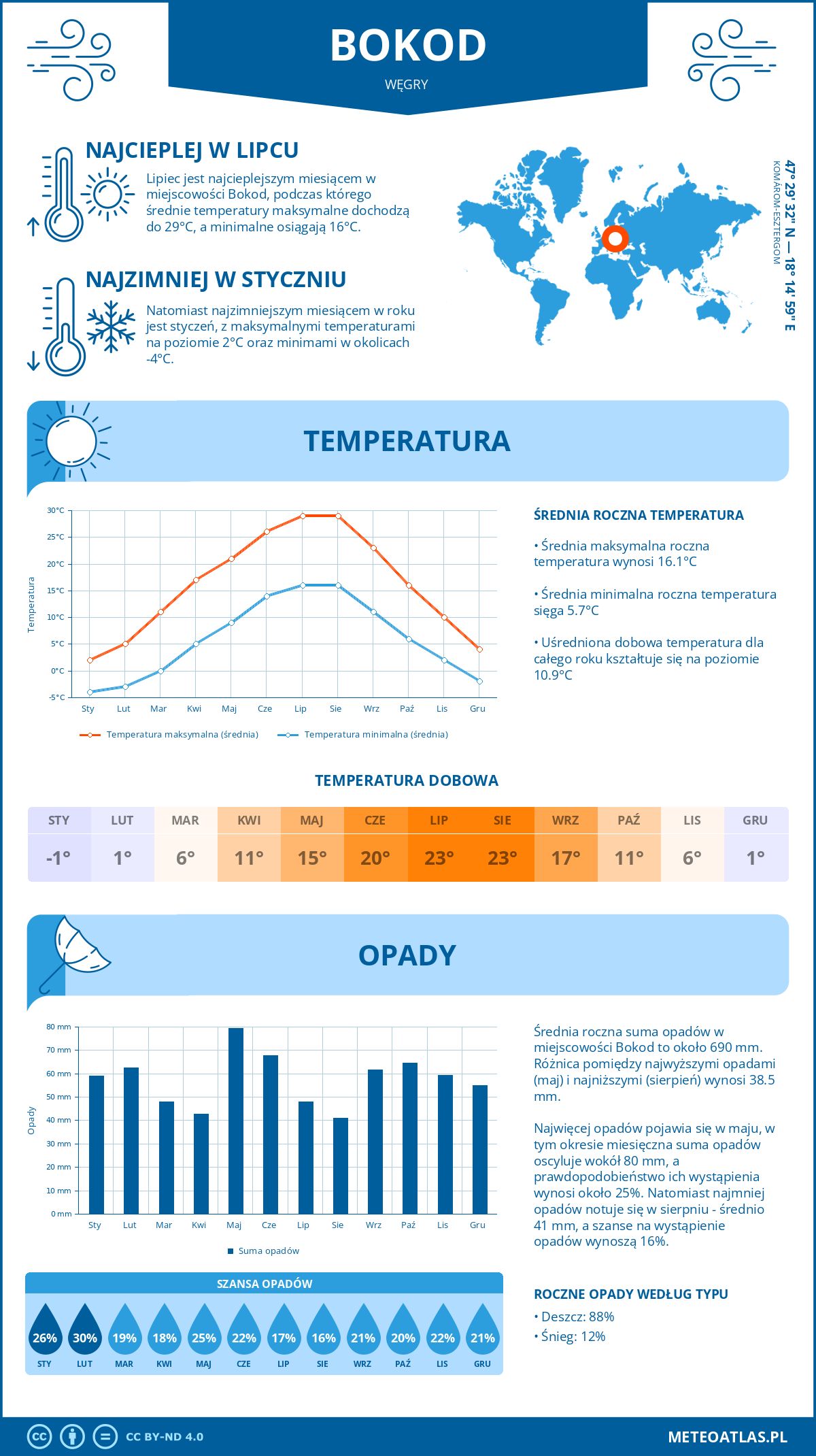 Infografika: klimat oraz miesięczne średnie temperatury i opady