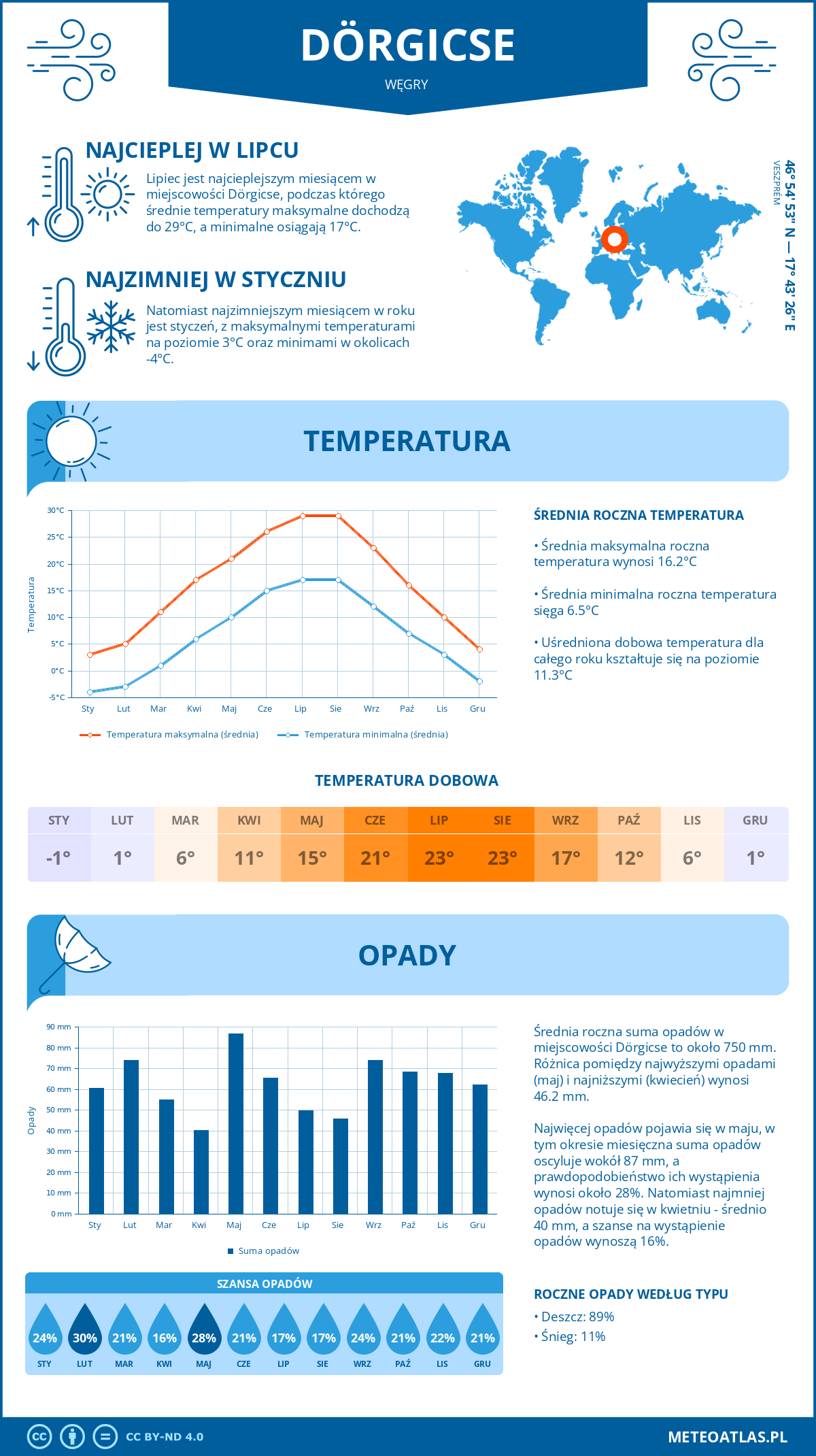 Infografika: klimat oraz miesięczne średnie temperatury i opady