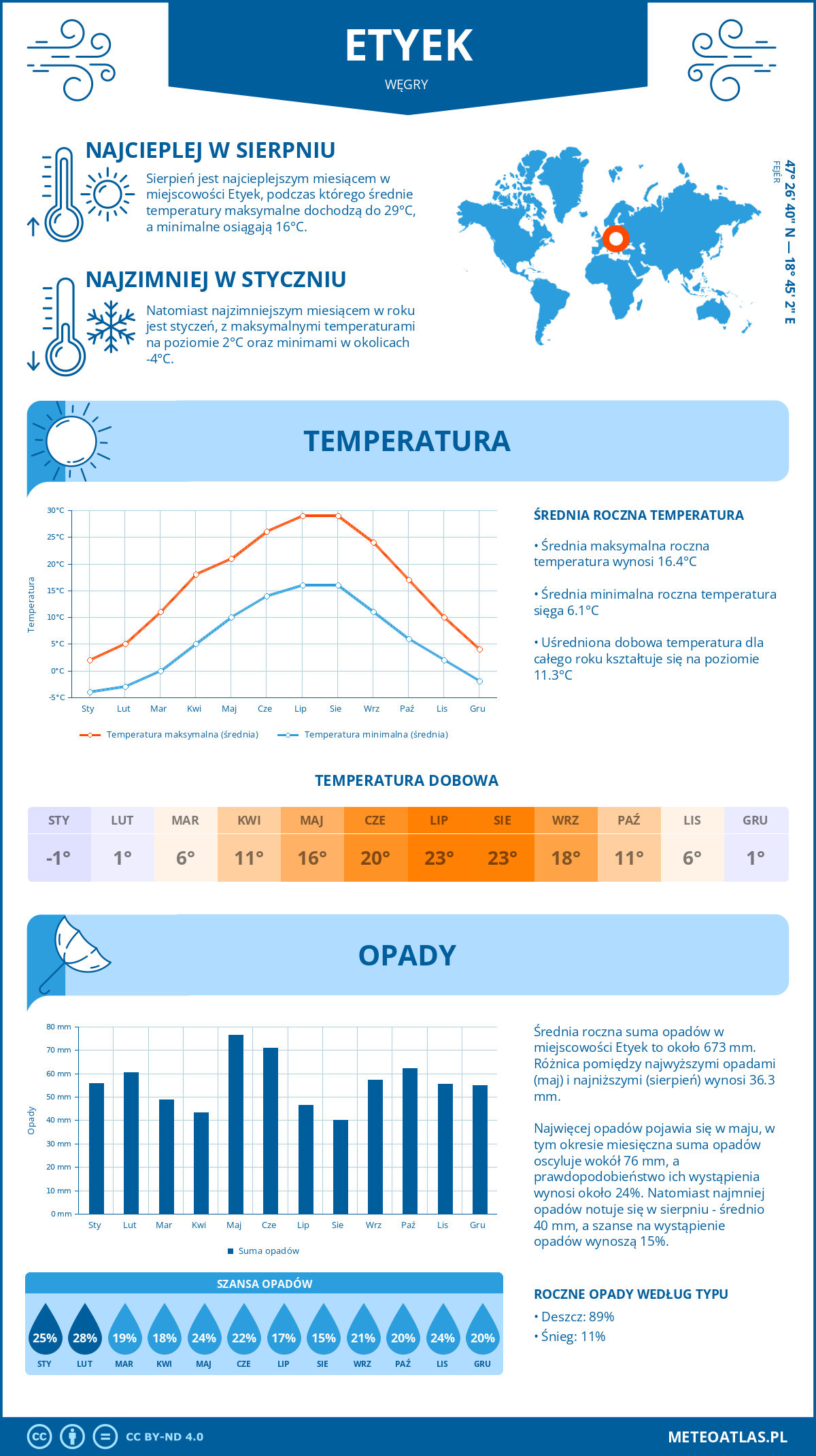 Infografika: klimat oraz miesięczne średnie temperatury i opady