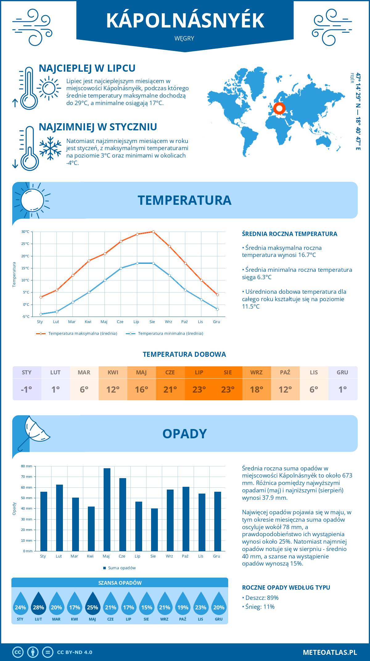 Infografika: klimat oraz miesięczne średnie temperatury i opady