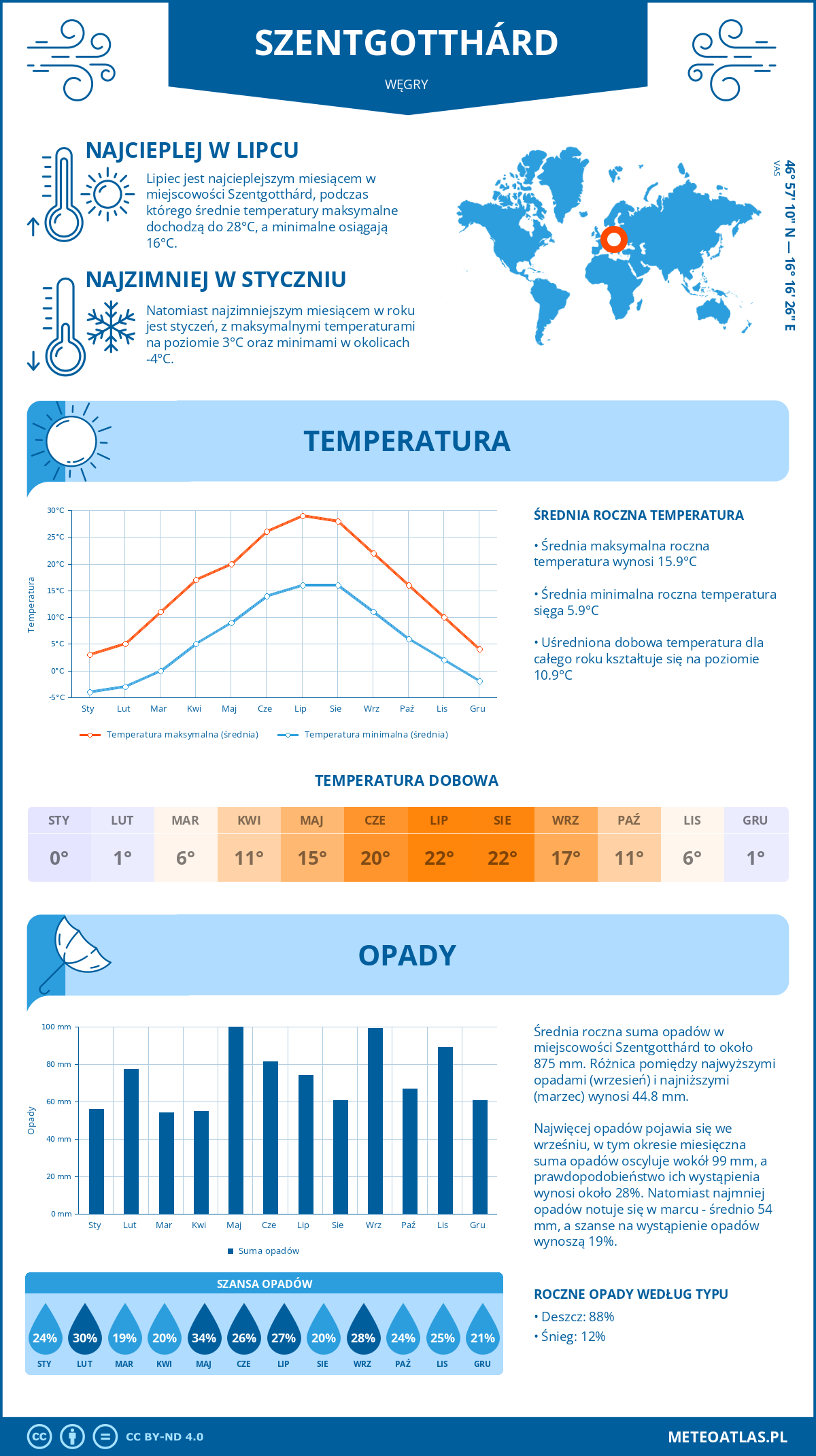 Infografika: klimat oraz miesięczne średnie temperatury i opady